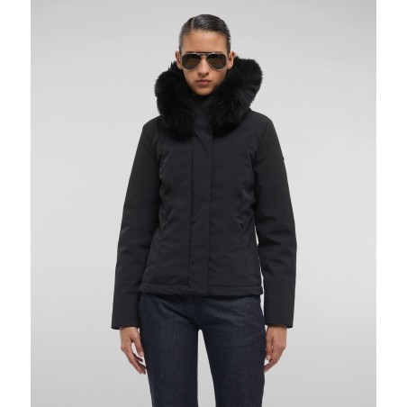 Giubbotto invernale da Donna composto in tessuto tecnico soft-shell, con pelliccia sul cappuccio, ideale per i giorni più freddi della stagione invernale. Imbottitura termica RefrigiWear® 100% animal-free ideale per affrontare le temperature fredde. Look pulito e moderno. Super-versatile, ideale per qualsiasi look.