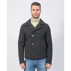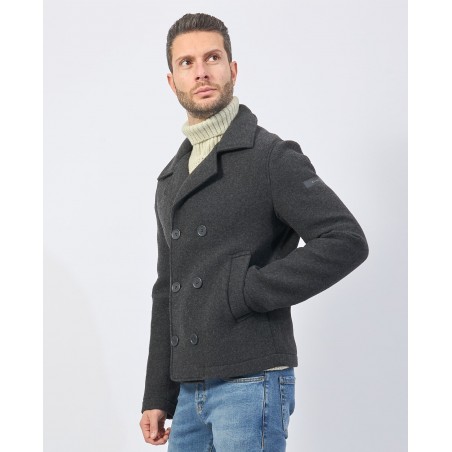 Giacca doppiopetto da uomo Yes Zee in misto lana con 6 bottoni, tasche laterali e targhetta con logo sul braccio.