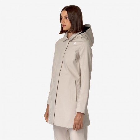 Mathy reinterpreta il design iconico del trench con dettagli funzionali ed eleganti. Il modello ha fit slim con colletto a camicia e cappuccio rimovibile da usare in caso di piogge improvvise. Il modello si caratterizza per il tessuto accoppiato a 3 strati che combina polyestere esterno, una membrana interna isolante ed uno strato in micro pile leggero e morbido sulla pelle. La texture è estremamente performante in termini di resistenza all’acqua perchè sopporta fino a 10000 colonne d’acqua ed è ideale per il passaggio di stagione offrendo protezione, leggerezza e una sensazione piacevole a contatto con la pelle.