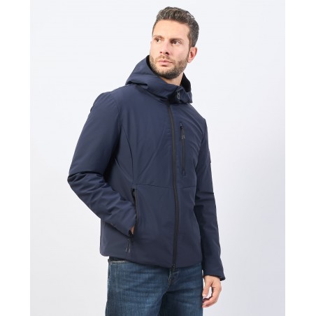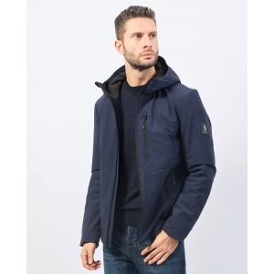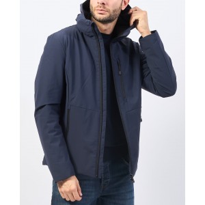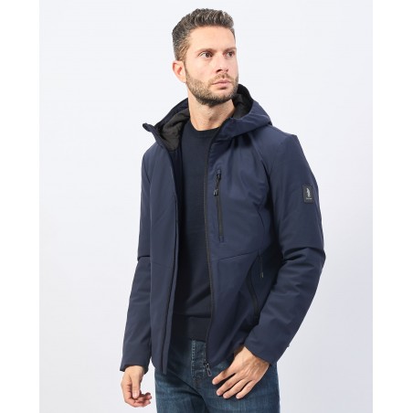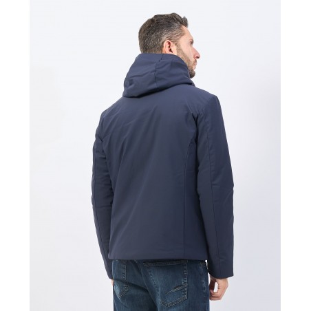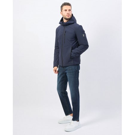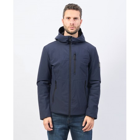 Giubbino da uomo Rood di Refrigue con cappuccio, fullzip, tasche laterali, patch logata sulla manica. Regular fit. Colore blu.