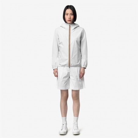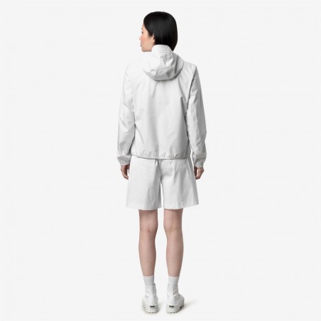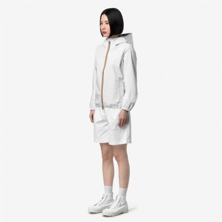 Lil è una giacca corta da donna ideale per le mezze stagioni e con vestibilità slim, realizzata in tessuto tecnico elasticizzato, che segue i movimenti e protegge dal vento e dalla pioggia fino a 10000 colonne d’acqua. L'interno è foderato con una membrana isolante decorata con lettering K-Way stampato all over in tonalità argento. Le tasche laterali con zip, il cappuccio avvolgente, i polsini e i bordi elastici sono dettagli funzionali che garantiscono aderenza e una vestibilità comoda e veloce.