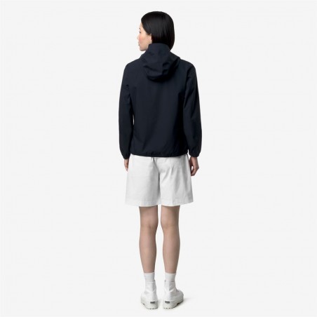 Lil è una giacca corta da donna ideale per le mezze stagioni e con vestibilità slim, realizzata in tessuto tecnico elasticizzato, che segue i movimenti e protegge dal vento e dalla pioggia fino a 10000 colonne d’acqua. L'interno è foderato con una membrana isolante decorata con lettering K-Way stampato all over in tonalità argento. Le tasche laterali con zip, il cappuccio avvolgente, i polsini e i bordi elastici sono dettagli funzionali che garantiscono aderenza e una vestibilità comoda e veloce.