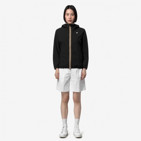 Lil è una giacca corta da donna ideale per le mezze stagioni e con vestibilità slim, realizzata in tessuto tecnico elasticizzato, che segue i movimenti e protegge dal vento e dalla pioggia fino a 10000 colonne d’acqua. L'interno è foderato con una membrana isolante decorata con lettering K-Way stampato all over in tonalità argento. Le tasche laterali con zip, il cappuccio avvolgente, i polsini e i bordi elastici sono dettagli funzionali che garantiscono aderenza e una vestibilità comoda e veloce.