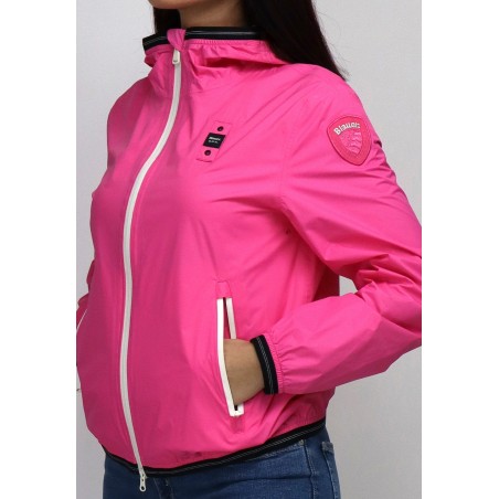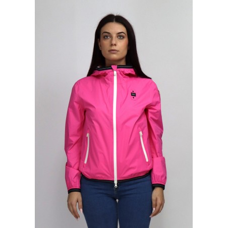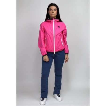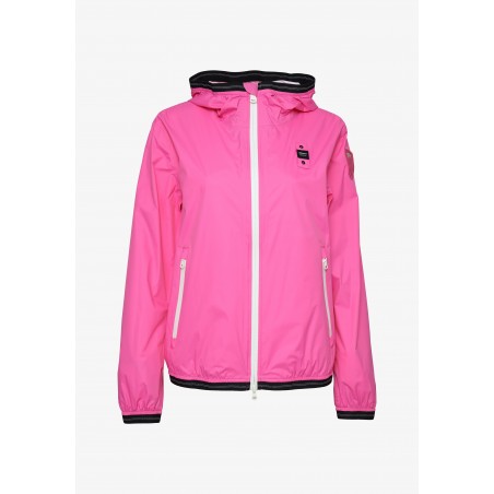 Giacca a vento in nylon leggermente elasticizzata sfoderata con cappuccio fisso. Capo indicato per le fresche serate e per le gite fuoriporta.