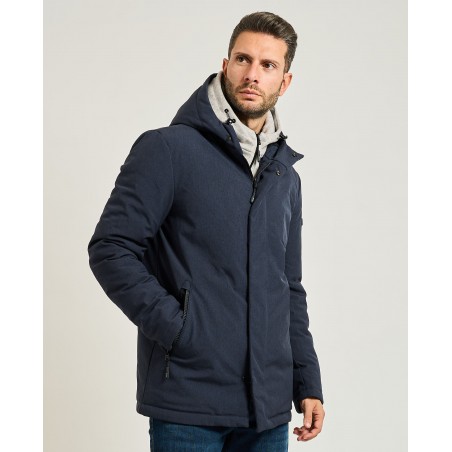 Giubbotto invernale da Uomo con cappuccio, composto in tessuto tecnico soft-shell e con imbottitura in fiocchi di eco-piuma DuPont™ Sorona®. Capo estremamente comodo, caldo e confortevole. Il tessuto garantisce performance elevate grazie al trattamento esterno antivento e idrorepellente. Il look è moderno e pulito.