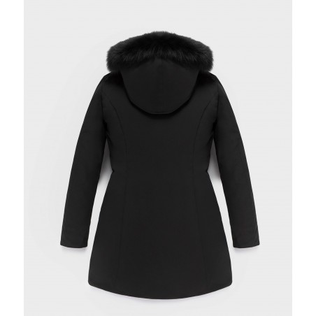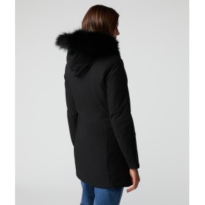La Mead Fur Jacket è il capo da avere assolutamente nel guardaroba. Un piumino invernale da Donna con pelliccia, perfetto da indossare in tutte le occasioni, dalla vita cittadina di tutti i giorni, a momenti più formali o di ufficio. Esternamente è composto in un nylon raso superleggero, antivento e con trattamento idrorepellente, dall’aspetto prezioso e leggermente iridescente. Internamente è imbottito ad iniezione diretta in 100% piuma 90-10, che rende il capo estremamente morbido e piacevole da indossare. Il capo è ricercato fino all’ultimo dettaglio: la chiusura frontale è con zip e cursore personalizzato, i polsini sono elastici per la massima protezione da vento e pioggia, il cappuccio è con bordo in pelliccia.