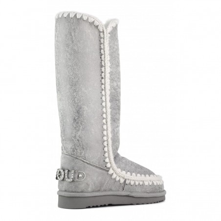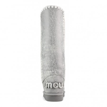 MOU Eskimo 40, il nostro iconico mou eskimo 40 in scintillante pelle increspata, per un look cool e d'impatto. Il mix di sfumature sofisticate, design elegante e artigianalità rendono l'eskimo 40 il più amato dalle fashion victim quando si tratta di calzature invernali. Realizzato con pelle di montone double face di qualità premium, cuciture in lana all'uncinetto distintive di mou, tallone rinforzato e una resistente suola esterna in EVA e gomma. Altezza dello stivale 40cm. Pratico, elegante e straordinariamente confortevole.