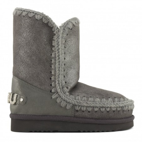 Eskimo 24 realizzato in vera pelle di montone double-face divinamente calda, cuciture in lana all'uncinetto distintive di Mou, tallone rinforzato e una suola esterna in Eva & gomma. Quetso eskimo alto 24 cm é elegante , comodo e resistente.