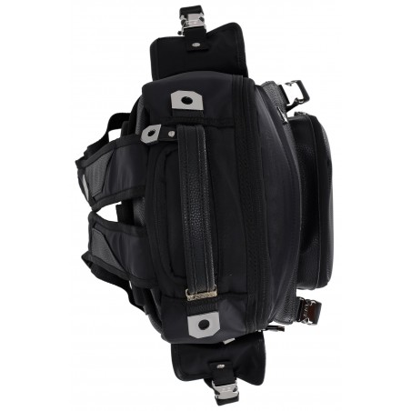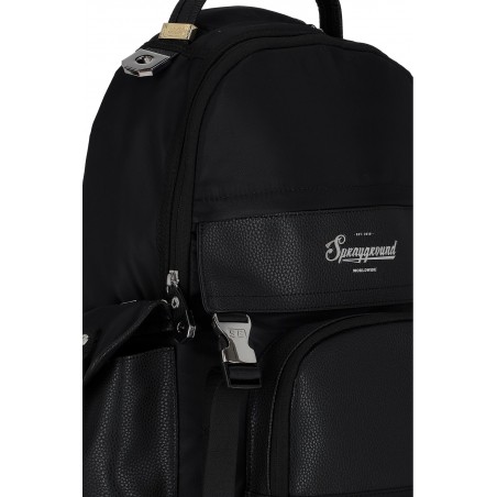 Zaino Sprayground realizzato in eco-pelle resistente e durevole presenta tasca frontale con zip logata, tasche laterali e tasca superiore separata portaocchiali in velour con cerniera logata. Sul retro scomparto con imbottitura ergonomica in rete, tasca nascosta con zip, cinghie regolabili per ogni tipo di taglia e manicotto posteriore per collegare il bagaglio a mano. Manico superiore con placca "Sprayground Authentic" in metallo.